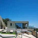 В Epsilon Villa, Private Swimming Pool Garden, Panoramic Sunset є тераса з видом на море, а також відкритий басейн.